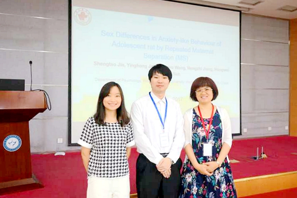 会议期间,金圣涛同学在其指导老师孙琳博士的指导下进行了学术报告,题目为《Sex Differences in Anxiety-like Behaviour of Adolescent rat by Repeated Maternal Separation》(持续的母婴分离对青春期大鼠的焦虑样行为影响的性别差异),提出了早期生命应激增加个体发展中精神障碍风险的预防性动物模型研究思路。会后获得了参会成员的高度评价,并对其研究工作给予了肯定,增加了我校在精神疾病研究领域的学术科研影响力。