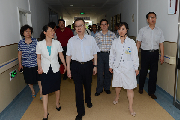 6月22日上午,全国政协常委、教科文卫体委员会副主任黄洁夫率全国政协调研组,就“实施全面二孩政策后,医疗卫生服务面临的挑战与配套政策”来我校附属医院调研。山东省政协副主席赵家军,潍坊市政协副主席李士来,我校校长管英俊,副校长、附属医院党委书记葛国文,附属医院院长胡温庭等陪同调研全程。