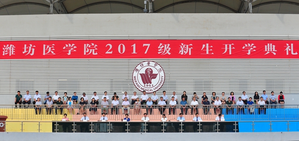 金色九月,杏林飘香,硕果累累。9月3日上午8时,我校2017级新生开学典礼在浮烟山校区体育场隆重举行。校领导李欣章、管英俊、张潍华、孙宏伟、朱军、井西学、葛国文、刘军、田艳玲出席开学典礼。开学典礼由副校长朱军主持。