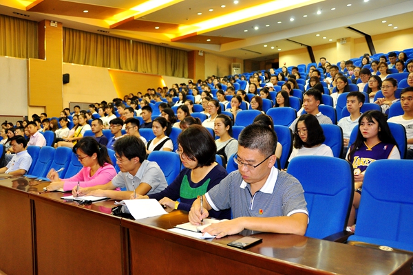 9月3日,2017级研究生入学教育在浮烟山校区办公楼一楼报告厅举行。副校长刘军出席并讲话。各院(系)负责研究生教育工作的负责人、研究生处全体人员、2017级博士、硕士研究生参加了会议。