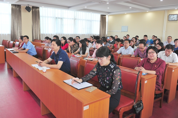 姚昌从当前学生思想政治工作的要求、存在的问题与不足以及如何加强和改进高校思想政治工作等三个方面展开论述。他指出,做思想政治工作本质上是做“人”的工作,高校的教育工作者应该坚定共产主义理想信念,“树人德必先立德”,站在制高点上引领学生。要提高站位,加强学习,做到在加强中改进、在改进中创新,构建大思政格局,齐抓共管进行无缝式育人。讲座后,姚昌与辅导员、班主任进行了互动交流。