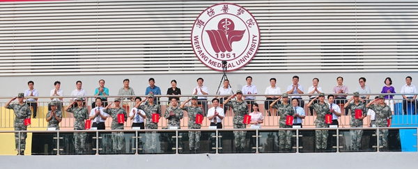 大会在雄壮的国歌声中拉开帷幕。李欣章宣布军训汇报检阅开始。在军训团检阅总指挥刘冲的指挥下,2017级新生队列整齐、步伐矫健、口号响亮、动作规范,精彩的队列示范方队和军体拳表演赢得了热烈掌声,用实际行动展现了本次军训的丰硕成果,用勇敢和坚毅诠释了青春的意义,展示了潍医学子的风采。