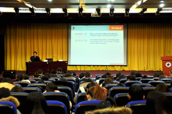 12月8日下午,学校邀请东北师范大学马克思主义部部长、博士生导师庞立生教授,做客我校潍医大讲堂作了“我们时代的精神生活”讲座。讲座由校宣传部部长王世群主持。宣传部全体老师、各院(系)团总支书记及学生代表共计200余人聆听了本次报告。