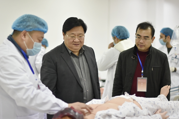 12月8日下午,我校2012级留学生毕业前临床技能考核在医学实验实训中心进行。副校长孙宏伟到现场巡视考核工作,详细询问了各项考核工作开展情况。