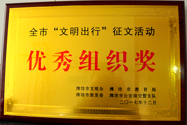 据悉,本次文明出行征文活动是潍坊市为深化文明城市创建,推进“四个城市”建设,努力提升市民素质、社会文明程度、城市交通秩序、群众生活质量而举办的,在全社会形成了关注出行文明、倡导文明出行的良好氛围。本次征文活动优秀组织奖25个,征文成年组一等奖5篇、二等奖10篇、三等奖20篇、优秀奖50篇。