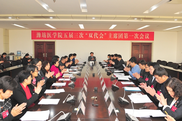 1月11日下午,我校第五届教职工代表大会暨工会会员代表大会第三次会议(简称五届三次“双代会”)主席团第一次会议在办公楼三楼会议室召开。大会主席团全体成员参加会议。校党委副书记张潍华主持会议。