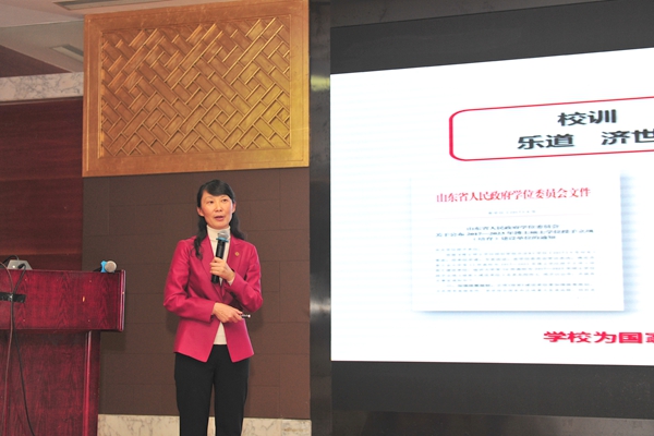 管英俊代表学校致辞,她回顾了学校一年来改革发展取得的成绩,详细介绍了学校在教育教学、科学研究、社会服务、文化传承创新、国际交流合作方面取得成绩以及大学创建工作进展情况。 并希望在广大校友的鼎力相助下,全体潍医人共同努力,早日实现“建设特色鲜明、国内知名的高水平医科大学”的“潍医梦”,创造潍医人的美好未来!
