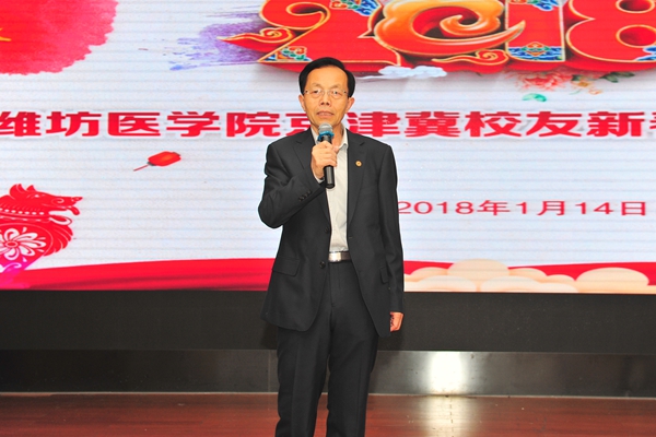 北京校友会副会长兼秘书长段重高致辞,表达了对母校培养的感激之情,他希望京津冀的校友们继续秉承“自强不息、锐意进取”的潍医精神,在各自工作领域奋发图强、勇于创新、团结互助、共同进步,为母校在关键时刻的建设发展做出新的更大贡献。