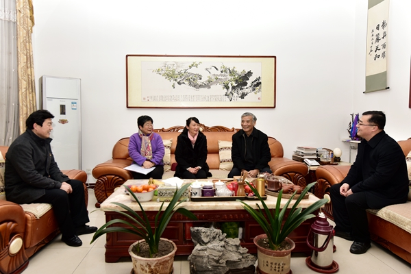 在春节来临之际,校领导李欣章、管英俊、张潍华、孙宏伟、朱军、井西学、葛国文、刘军、田艳玲分别到离退休老同志家中走访慰问,为他们送去学校亲切的关怀和新春祝福。