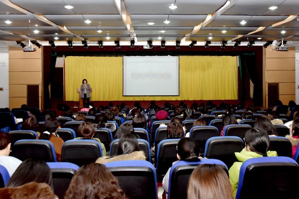 参观活动结束后,200多名师生在图书馆一楼演播厅参加了校妇委会组织的“智慧女性·美丽人生”课堂活动,聆听了心理学系副主任王艳郁教授主讲的“真实的幸福”心理健康教育讲座,带领大家一起感受幸福,了解幸福在人生中的作用和意义,以丰富的事例和互动告诉大家什么是幸福、怎样获得幸福。校妇委会主任、工会副主席魏瑞荣主持讲座。