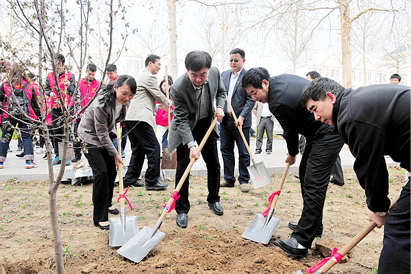 3月29日上午,潍城区园林管理处干部职工一行30余人在陈玉文局长带领下,来校开展“送绿进校园活动”,向学校捐赠绚丽海棠、白蜡树苗木各100株。学校高度重视此次活动,校党委书记李欣章、校长管英俊、副校长井西学亲切会见了陈玉文局长一行,对潍城区园林管理处此次捐赠活动表示感谢。