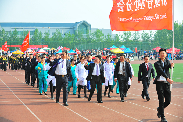 4月26日上午,学校第46届春季运动会在浮烟山校区体育场开幕。校领导李欣章、管英俊、张潍华、孙宏伟、井西学、葛国文、田艳玲出席开幕式并在主席台就座。副校长井西学主持开幕式。