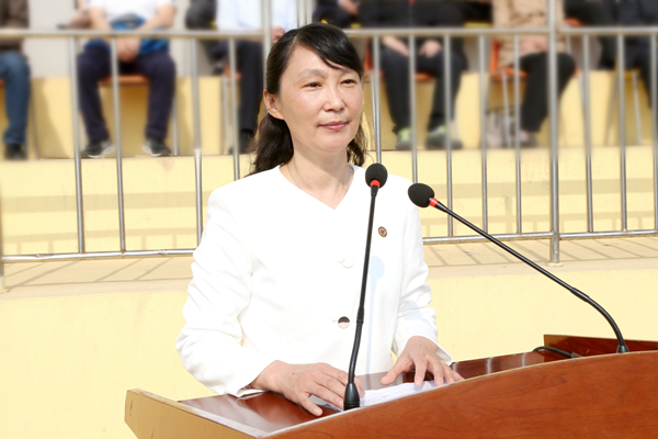 校长管英俊致开幕词。她指出,本届运动会是学校认真贯彻落实习近平新时代中国特色社会主义思想和党的十九大精神,服务山东省新旧动能转换重大战略,贯彻第三次党代会精神,奋力创建特色鲜明、国内知名的高水平医科大学的关键时期,召开的一次体育盛会。她强调,体育强则中国强,国运兴则体育兴。学校始终高度重视体育工作,深化体育教学改革,组织开展了丰富多彩的体育活动,热爱体育锻炼、积极强健体魄、弘扬体育精神的校园氛围更加浓厚。她希望,全体运动员、裁判员和广大师生要热情参与,文明参赛;要大力弘扬“更快、更高、更强”的奥林匹克精神,高质量、高标准、高效率落实落细各项工作任务,加快学校事业改革步伐,为创造全体潍医人的美好生活持续贡献强劲动能。