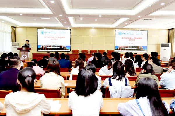 张明徽以《基于NKT的新一代免疫细胞治疗技术》为题做了精彩讲座,他结合自己的研究内容,详细介绍了基于NKT的广泛抗肿瘤细胞制剂的研究,包括免疫细胞治疗基本程序、细胞治疗的专业特点、关键技术、推广价值和安全评价等。其全新的研究视角,充分调动了在座师生的好奇心和求知欲,大家踊跃提问,张博士细致而全面地一一进行了解答。