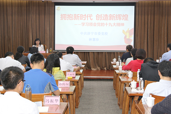 开班式后,济宁市委党校林慧珍教授作了题为《拥抱新时代创造新辉煌 —— 学习领会党的十九大精神》的第一讲辅导报告。