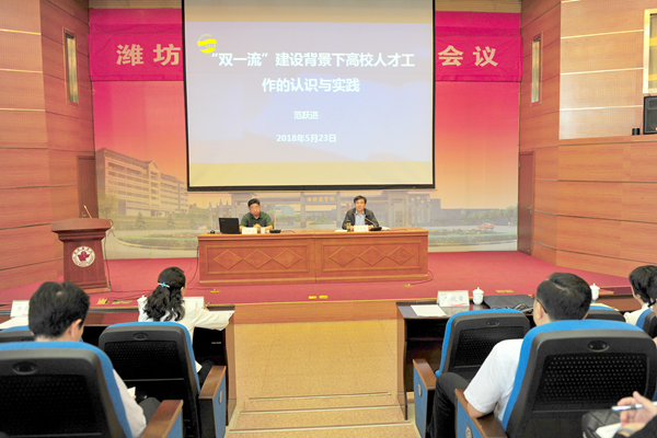 5月23日上午,学校人才工作会议召开之际,青岛大学原党委书记、校长范跃进教授应邀来校作了题为《“双一流”建设背景下高校人才工作的认识与实践》的辅导报告。校领导李欣章、管英俊、张潍华、朱军、井西学、葛国文、刘军、田艳玲出席报告会。报告会由校党委书记李欣章主持。