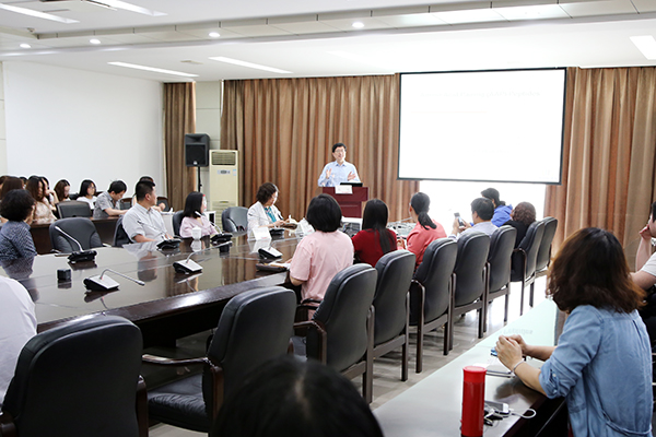 聘任仪式结束后,陈璞院士在办公室三楼会议室做了题为“Amino Acid Pairing Peptides and their Applications in Drug and Gene Delivery”的精彩报告。陈院士结合自己的研究思路和研究结果,清楚透彻的解释了纳米技术的基本概念及其用途,多肽的合成,多肽自组装制备颗粒的设计及在递药系统和基因传递中的应用。陈院士讲座深入浅出,涉及到物理、化学、生物技术、药剂学等多学科的内容,引起了在场师生的浓厚兴趣,给在场师生提供了良好的研究思路和启发。