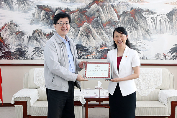 5月25日上午,学校在办公楼五楼接待室举行聘任仪式,聘任加拿大工程院院士、滑铁卢大学陈璞教授为我校特聘教授。校长管英俊为陈璞院士颁发了聘书。副校长刘军出席聘任仪式,科研处、人事处部门负责人,药学院张维芬教授参加了聘任仪式。