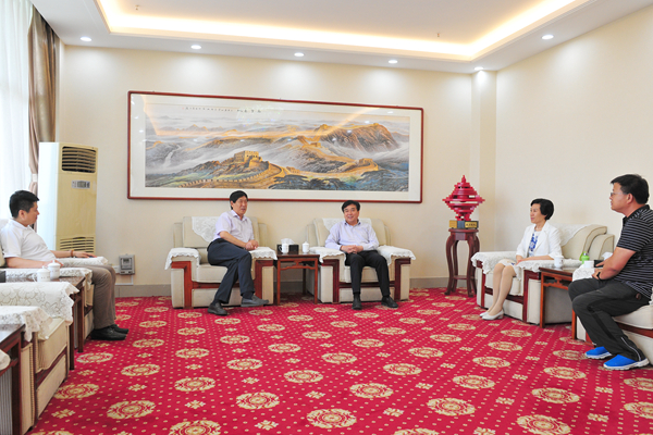 讲座后,校党委书记李欣章在办公楼六楼接待室接见了牟思伦一行。