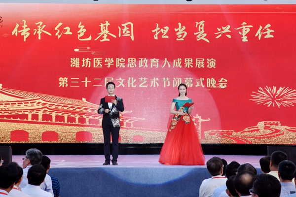 仲夏时节,潍医校园生机盎然;火红六月,潍医学子青春激扬。6月19日晚,在浮烟山校区中和广场,由校团委和马克思主义学院主办,护理学院承办的“传承红色基因,担当复兴重任”党建思政育人成果展演暨第32届文化艺术节闭幕晚会举办。省委教育工委常务副书记、省教育厅厅长、党组书记邓云锋,省委教育工委委员、省教育厅副厅长、党组成员白皓,省委组织部组织二处处长马广峰,潍坊市委常委、组织部部长林红玉,省委教育工委学校组织处处长冷健,省委教育工委学校组织处二级调研员徐文元,我校党委书记李欣章,校党委副书记张潍华,校纪委书记田艳玲,参加全省高校基层党建工作重点任务推进会46所普通公办本科高校党委分管领导、党委组织部部长、17地市教育工委分管领导共计120余人,学校师生3000余人现场观看了演出。