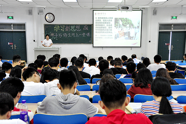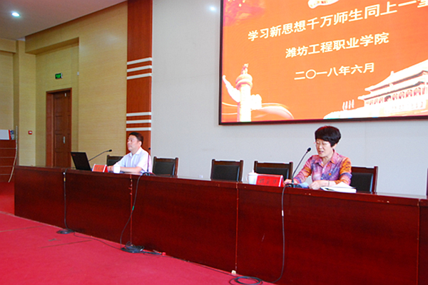 为深入学习宣传贯彻习近平总书记在北京大学师生座谈会和纪念马克思诞辰200周年大会上的重要讲话精神,教育部在全国高校组织开展“学习新思想千万师生同上一堂课”活动,这项活动是深入学习贯彻习近平总书记重要讲话精神的重大举措,是推动习近平新时代中国特色社会主义思想“三进”的关键举措。根据活动精神,中共山东省委教育工委专门组建了由高校领导、马克思主义理论专家和思政工作骨干参加的“山东高校习近平总书记重要讲话精神讲师团”。我校作为讲师团成员推荐高校,积极与省委教育工委联系,紧密沟通,认真组织讲师团成员的推荐工作。讲师团成员认真备课、精心撰写宣讲稿,分别在我校和山东畜牧兽医职业学院、山东交通职业学院、山东信息职业技术学院、 山东化工职业学院、 潍坊工程职业学院、潍坊工商职业学院七所高校进行了宣讲授课。