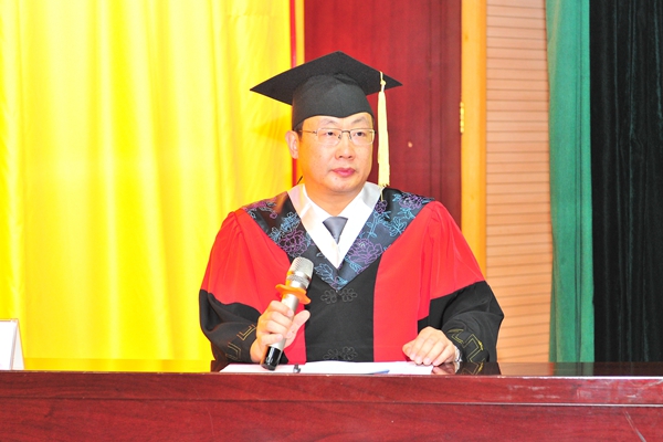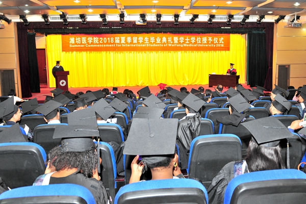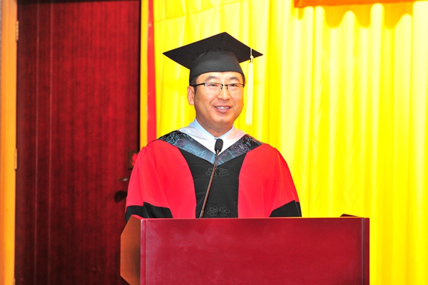 孙宏伟在典礼上讲话,向圆满完成学业的留学生表示祝贺,向为我校留学生教育工作付出辛勤劳动的教师们表示衷心的感谢。刘军宣读了《关于授予2018届夏季留学生学士学位的决定》。