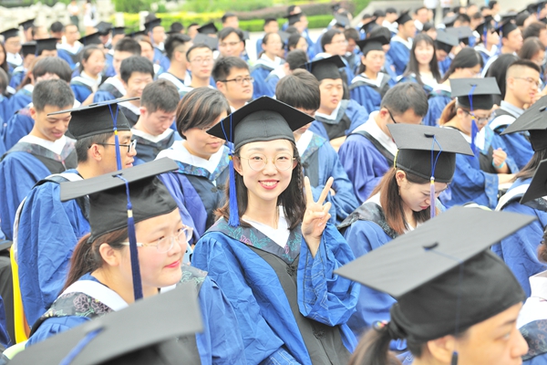 2018届研究生毕业典礼暨学位授予仪式结束后,全体校领导、研究生导师和全体毕业研究生在中和广场合影留念。