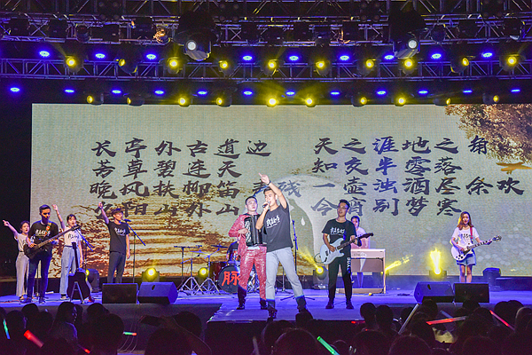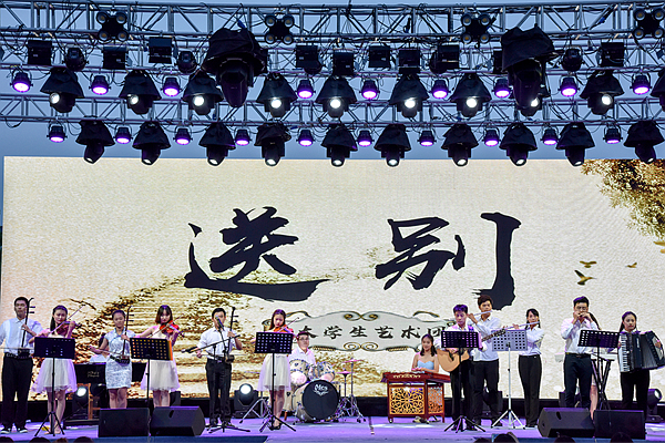 晚会在精彩的开场器乐表演《送别》中拉开了帷幕,伴随着歌声《潍医的日子》,离别学子作别青春,难舍情深的心声娓娓道来。《那些年》《See you again》《没离开过》,一首首歌曲,在抒情优美的歌声中唱响了毕业生的不舍与眷恋。临床医学院辅导员与毕业生深情献唱《祝你一路顺风》,演绎着老师对学生的依依不舍。一曲《父亲写的散文诗》,则传递着毕业生对母校和师长的崇敬和深深眷恋。毕业生们精心编排的舞蹈《青春时光》《灼灼其华》《青春不散》,伴随着同学们深情的舞姿,一幕幕校园图景感染着在场的每一位师生。《最美的年华》,老师与毕业生同台起舞,动感的节奏舞动出毕业生们对母校的恋恋不舍,每一次跳跃,每一次伸展都展现出毕业生对未来的憧憬。真挚唯美的《化茧成蝶》诗朗诵,展示了我校优秀毕业生樊姝彤“励志点亮人生,奋斗成就梦想”奋斗事迹。来自公共卫生与管理学院同一宿舍的8位姑娘全部考取了研究生,她们用一首《想把我唱给你听》激励着现场的每一位潍医学子。动静脉学生乐队带来了原创歌曲《写一首歌送给青春》,唱出了潍医学子对青春的感悟,伴随着乐队演绎的李叔同《送别》,现场响起了千人大合唱。在四位毕业生的深情朗诵中,《再见,潍医》带领同学回望潍医的点点滴滴,畅想未来的希望和梦想。晚会在大合唱《放心去飞》中推向了高潮,全场毕业生挥动起手中的荧光棒营造出绚丽的海洋,青春的歌声久久回荡。