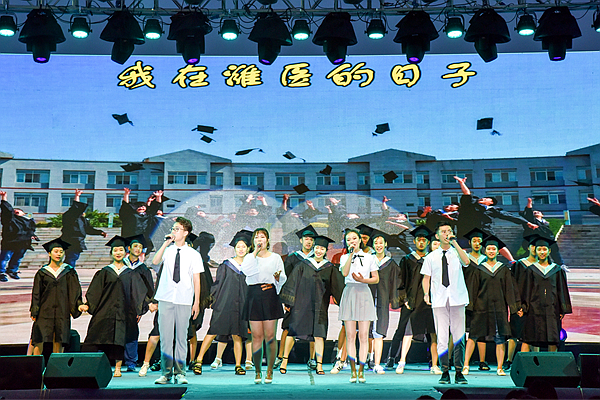 晚会期间还开展了对优秀毕业生樊姝彤、公共卫生与管理学院优秀宿舍以及西部计划志愿者的访谈,穿插播放了同学们精心制作的老师寄语、毕业生留言视频,谆谆的教诲、奋进的感言、青春的脸庞、定格的瞬间让同学们潸然泪下。立志鸿鹄逐梦远方,潍医将与毕业学子携手向前,怀梦想、致远方、共创辉煌。