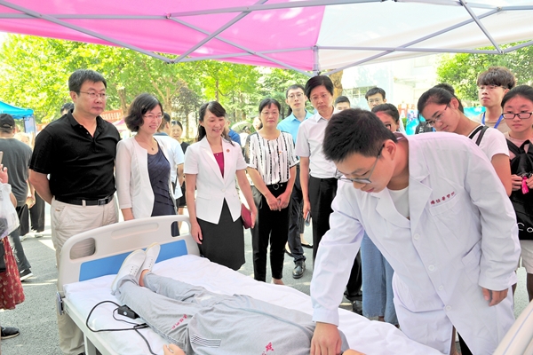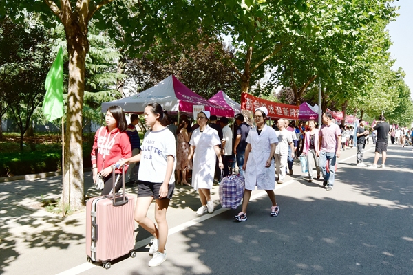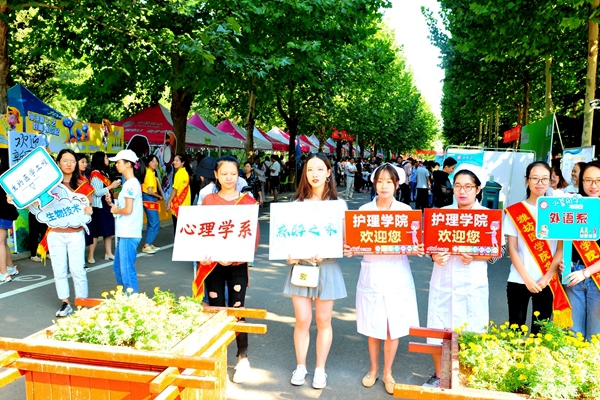 今日的校园处处洋溢着青春的气息。随处可见的展板、条幅向来自五湖四海的同学们致以最诚挚的问候。各院(系)拼的是创意,纷纷结合专业特点,以缤纷的创意喜迎新时代“00”后青年,为校园带来了崭新的气象。临床医学院的笑脸墙、公共卫生与管理学院的“e启共享8”志愿服务、口腔医学院的新生和家长口腔义诊、麻醉学系的吉祥物人形板、“醉美家乡情”地图、心理学系的“成长树”,医学影像学系的精美信封、医学检验学系的专属书签福袋以及护理学院、药学院、生物科学与技术学院、外语系的网络迎新,每一处细节都承载着无微不至的关怀。