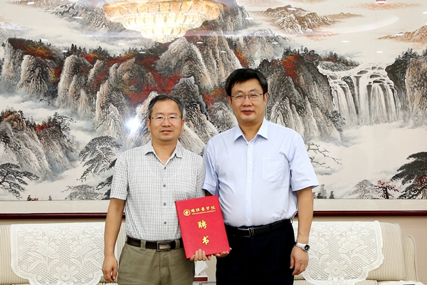 9月15日,由山东省科协、山东省教育厅、山东省科技厅、山东省卫计委主办,我校承办的第三十八期山东科学大讲堂在办公楼四楼西会议室举行。会前,副校长刘军接见了陈西广教授并进行座谈,党委办公室(院长办公室)、人事处、科研处、药学院负责人及教师代表参加座谈。刘军为陈西广教授颁发了客座教授聘书。