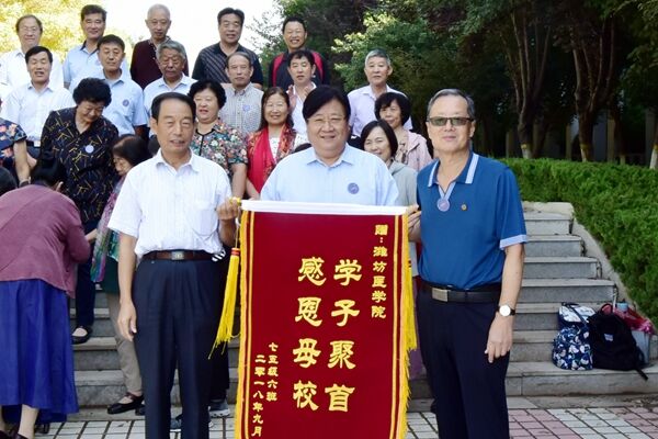 返校期间,各年级校友们参观了虞河校区、浮烟山校区和校史馆、医学实验实训中心等。78级1班校友、加拿大曼尼托巴大学医学中心孙东风博士为母校捐赠多伦多医师执业考试指南一套。校友们还举行了为学校献锦旗、为老师献鲜花等仪式,以表达对母校和老师的培养教育之恩。校友们纷纷表示返校活动为他们的相聚提供了契机,回到潍医、欢聚校园,很激动、很幸福并祝愿母校发展越来越好!