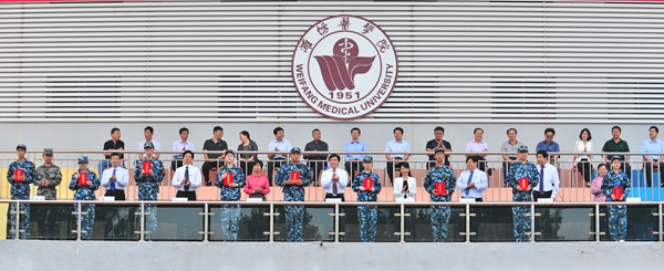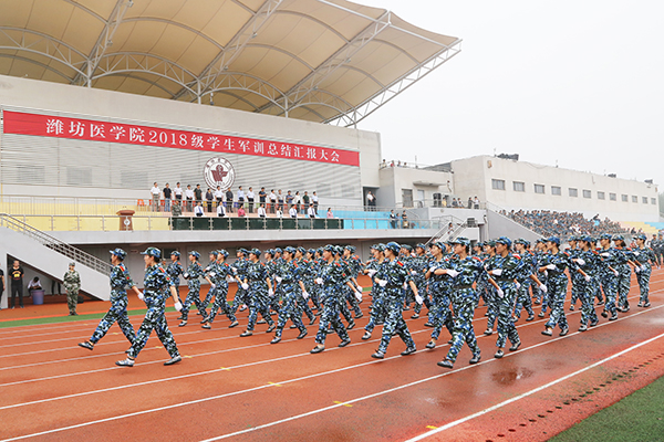 朱军作军训总结讲话。他首先向承担本次军训工作的教官表示衷心感谢,向圆满完成军训任务的全体同学及先进集体和个人表示热烈祝贺。他指出,在军训期间,2018级全体同学不畏困难,锻炼身体,磨练意志,强化作风,熔铸信念,在学习“战士的品格”这门课程中取得了优异的成绩,充分展现了潍医学子的良好风采。