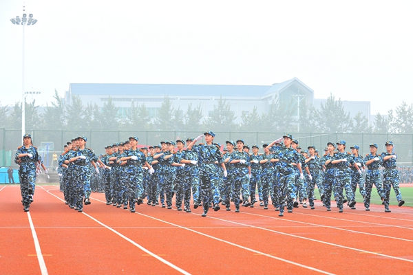 9月21日上午,我校2018级学生军训总结汇报大会在浮烟山校区体育场隆重举行。校党委书记李欣章,校长管英俊,校党委副书记张潍华,副校长孙宏伟、朱军、井西学、刘军,校纪委书记田艳玲,2018级新生军训团团长冯浩浩出席大会。军训工作领导小组全体成员,全体教官,2018级辅导员、班主任及全体参训学生参加大会。大会由井西学主持。