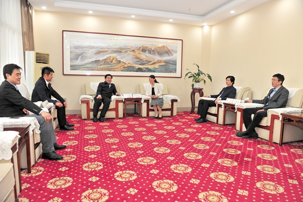 驻潍14所高校就业创业工作主管部门主要负责人参加座谈会,副校长朱军、省高校毕业生就业处处长李兆俊、王建龙科长、省高校就业信息网主任李亮出席座谈会。座谈会前,校长管英俊在六楼接待室会见了李兆俊一行。