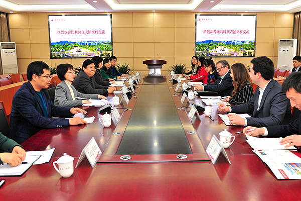11月15日上午,比利时马希尔斯集团董事长菲利普森.埃米尔一行四人在潍坊市奎文区经信局和潍坊企业代表的带领下来校交流,副校长孙宏伟,国际合作交流处、科研处、药学院、附属医院等部门相关人员参加了座谈。