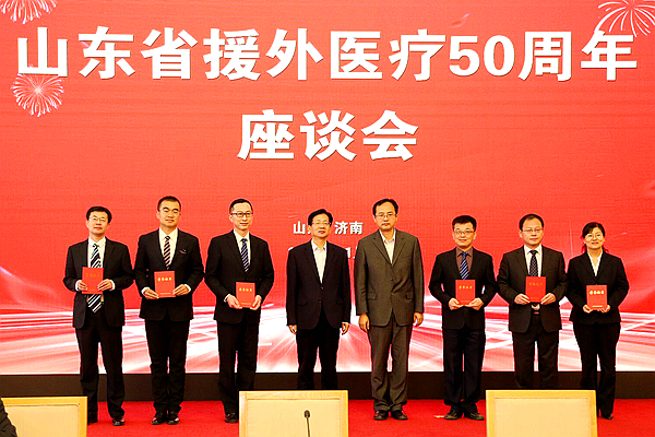 11月28日,山东省援外医疗50周年座谈会在济南召开。山东省副省长孙继业为为获奖集体和个人颁发了证书。 我校教师宋涛所在的第24批援助坦桑尼亚医疗队,荣获“全国援外先进集体”荣誉称号,宋涛荣获国家卫健委颁发的荣誉证书。