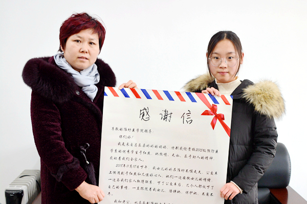 12月7日下午,昌乐女孩小娇(化名)的母亲专程赶往学校赠送感谢信,感谢我校公共卫生与管理学院预防医学专业2015级学生于红燕爱心助人、不计回报的高尚行为。公共卫生与管理学院党委书记董惠平带领于红燕一起接待了小娇的母亲。
