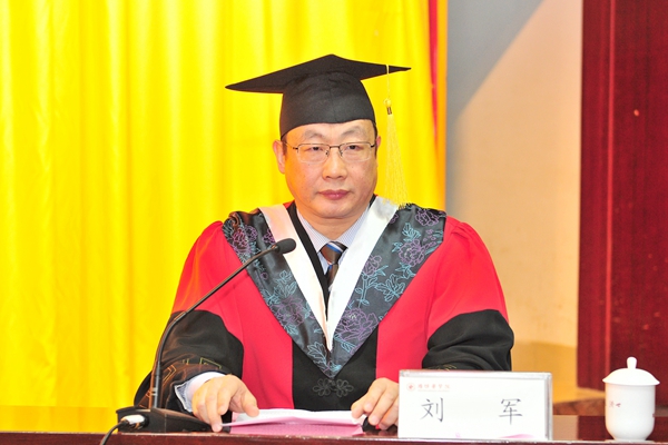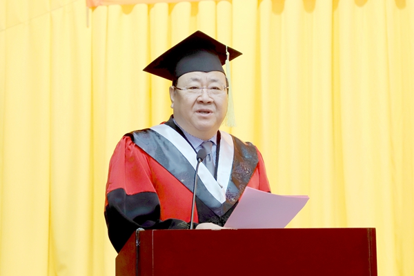 孙宏伟在典礼上讲话,向圆满完成学业的留学生表示祝贺,向为我校留学生教育工作付出辛勤劳动的教师们表示衷心的感谢。刘军宣读了《关于授予2018届冬季留学生学士学位的决定》。