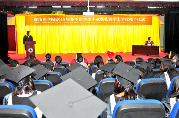 1月3日上午,我校2018届冬季留学生毕业典礼暨学士学位授予仪式在浮烟山校区图书馆演播厅举行。校长管英俊,副校长孙宏伟、刘军出席了典礼。相关部门、院(系)负责人、国际教育学院、毕业留学生、在校留学生代表和毕业生家长代表参加了典礼。典礼由刘军主持。