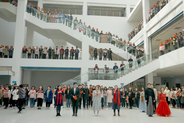 3月4日,开学第一天,整个校园洋溢着青春与朝气,悠扬婉转的小提琴声在午后的图书馆倏然响起,引得同学们驻足、聆听、参与。这时,歌曲《我和我的祖国》的乐声缓缓流淌而出,伴随着熟悉的旋律,同学们纷纷进入图书馆一起歌唱,振奋的歌声在校园上空飘扬,在每一个师生心中激荡。