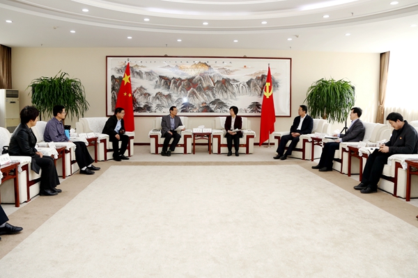 3月18日上午, 我校“第一书记”驻地菏泽市东明县卫生健康局局长谷文健、三春集镇政协主任魏高良等一行6人来访,学校党委副书记张潍华、副校长葛国文会见来访人员并进行了座谈交流。学校组织部、继续教育学院相关人员参加了座谈。