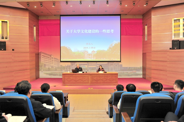 3月19日下午,在办公楼一楼报告厅,国家教育咨询委员会委员、原中山大学校长、著名教育家黄达人教授来校作了题为《关于大学文化建设的一些思考》的专题报告,校领导李欣章、管英俊、张潍华、孙宏伟、葛国文、田艳玲,全体处级干部、辅导员、机关党委所属部门科级干部、各教研办主任、马克思主义学院教师、学生代表聆听了报告。校长管英俊主持报告会。