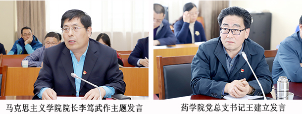 座谈会中,马克思主义学院李笃武院长作了《守正创新 凝聚共识 开创学校思政课建设新局面》的主题发言,药学院党总支书记王建立就如何将思想政治工作贯穿教育教学全过程谈了自身感悟,马克思主义学院的教师代表围绕如何践行课程思政、如何提升思想政治理论课现场课堂教学效果、如何多种形式地进行思想政治理论课教学等问题谈了自己的体会,针对我校目前在思想政治理论课教学中的难点、课堂教学模式改革、教学评价体系改革与完善等问题提出了意见和建议。
