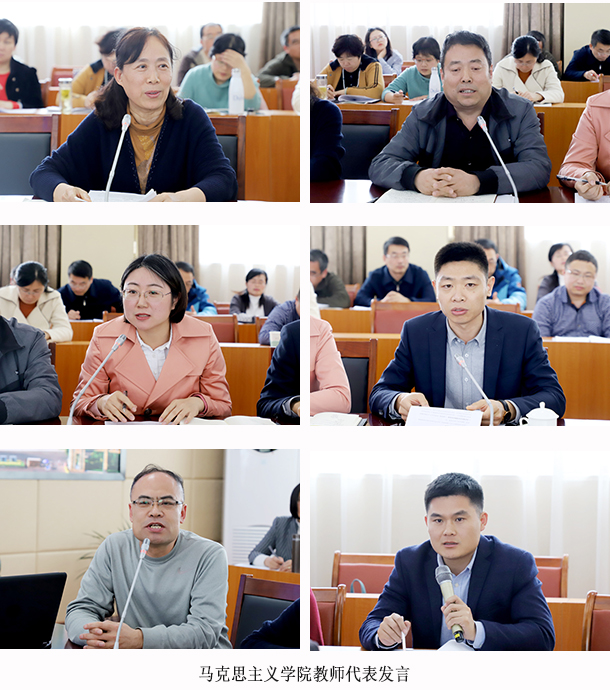 党委书记李欣章在讲话中指出,习近平总书记在思想政治理论课教师座谈会上发表的重要讲话,从党和国家事业长远发展的战略高度出发,深刻阐明了办好学校思政课的重要意义,就创新思政教学提出了“八个相统一”,就加强思政课教师队伍,提出了“六个要”的要求,这都为做好新时代学校思想政治工作提供了重要遵循。就下一步如何做好学校思想政治理论课建设,他提出五点要求:一是打造过硬的高素质思政教师队伍,发挥教师的积极性、主动性、创造性。教育者要先受教育,讲信仰者自己要有信仰。思政教师要有政治敏锐性,在大是大非面前保持政治清醒。同时,思维要新,视野要广,业务素质要过得硬。二是结合示范马院建设,深化教育教学改革。要结合示范马院建设,继续将提高教学质量作为教学工作的着力点和落脚点,继续进行教学改革和课程建设催生更多的教学名师。三是加快课程思政和专业思政建设,打造优质思政课。在专业课程中有机融入思想政治教育元素,淘汰“水课”,打造触动心灵的思政“金课”,推动思政课改革创新。四是加强意识形态阵地管理,牢牢掌握意识形态工作领导权管理权话语权。意识形态工作是一项极端重要的工作,事关党的前途命运、事关国家长治久安、事关民族凝聚力和向心力。要做好思想政治理论课建设工作,必须首先树牢意识形态主阵地意识,切实利用学生拔节孕穗期扎实开展思想政治教育,引导青少年扣好人生第一粒扣子。五是强化统筹协调、形成部门合力,努力打造“三全育人”思政大格局。学校相关职能部门要强化全员育人意识,在马克思主义学院的学科、教学、科研等方面提供支持,凝聚学校思想政治工作合力。形成党委统一领导、党政齐抓共管、有关部门各负其责、全学校协同配合的工作格局。