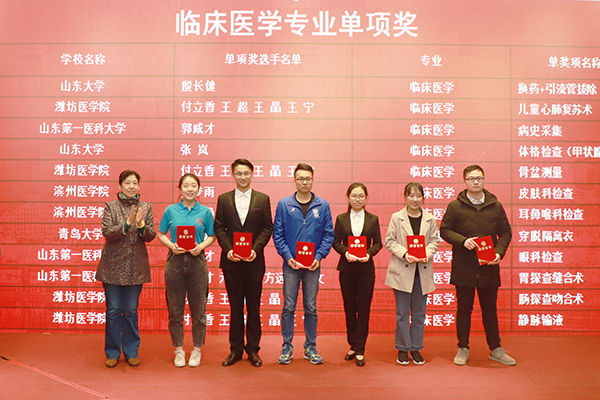 4月28日下午,2019年山东省高等医学院校大学生专业技能竞赛完成各项赛程,完美落幕,潍医学子获得4项团体一等奖,18项单项奖,获奖数量位居全省医学院校24支参赛代表队首位。