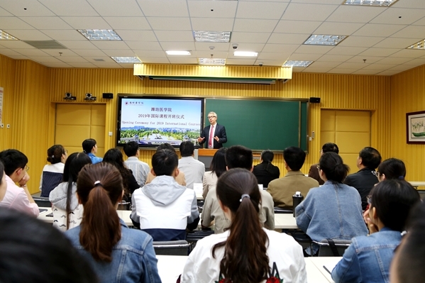 首门国际课程Anesthetic Pharmacology授课专家瑞典卡罗林斯卡医学院生理药理学系终身教授Karlström Olle Mattias表示非常荣幸来到潍坊医学院讲授国际课程,希望与潍医师生密切联系,进行深入学术交流和文化沟通,传授知识的同时增进友谊。