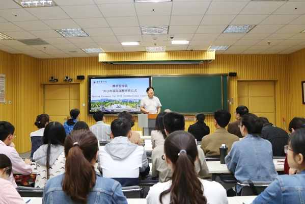 5月20日上午,学校2019年国际课程开班仪式在医学实验实训中心举行。副校长孙宏伟出席开班仪式并讲话。教务处、研究生处、国际合作交流处负责人、校教学质量评估督导专家代表、麻醉学系教师代表及全体选课学生参加了开课仪式。开班仪式由国际合作交流处副处长丁怡主持。