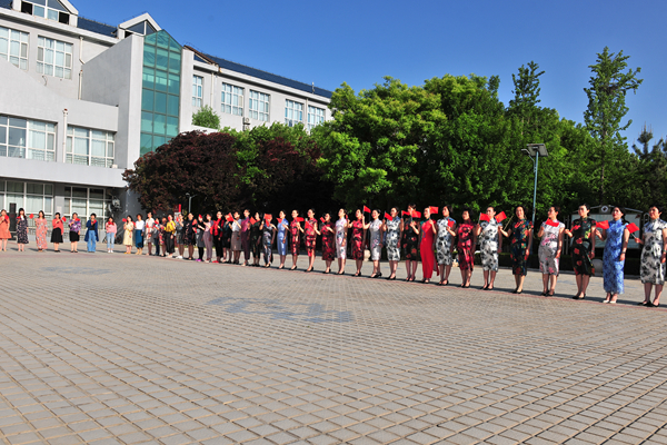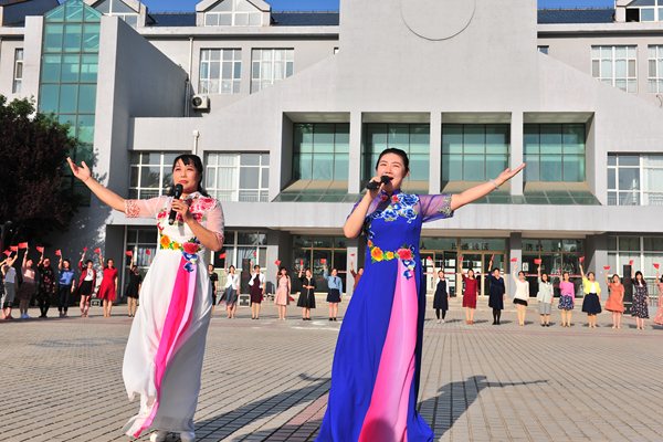 女教职工们身着款式各异的职业装、运动装、时尚装、旗袍装依次登场,形成一道靓丽的风景,展示了潍医女职工的端庄典雅、美丽自信的风采!大家激动地挥动起手中的国旗,一同放声高歌《我爱你,中国》,热烈欢快的气氛,真挚深情的歌舞,表达了潍医人的爱国之情、自豪之心。活动激发了全校教职医护员工爱国爱校情怀,祝福祖国更加繁荣昌盛,向新中国成立70周年华诞献礼。