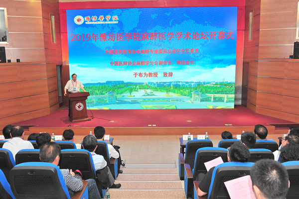 5月27日,山东省医学会麻醉学专业委员会、潍坊医学院麻醉学系共同举办的“2019年潍坊医学院麻醉医学学术论坛”在我校召开。中华医学会麻醉学分会第十届主任委员、中国医师协会麻醉医师分会候任会长、院士有效候选人于布为教授,中华医学会麻醉学分会候任主任委员、中国高等教育学会医学教育专业委员会常委兼麻醉学教育学组组长邓小明教授,山东省医学会麻醉学专业委员会名誉主任委员类维富教授,山东省医学会麻醉学专业委员会主任委员王月兰教授,人民卫生出版社医学教育中心策划编辑常帆编辑,校长管英俊,副校长井西学、葛国文出席会议。学校麻醉学专业各实习医院教学管理部门负责人、麻醉科主任、参加首届“恩华杯”主治医师麻醉操作技能竞赛的主治医师,党委办公室(学院办公室)、教务处、医院管理处负责人等100余人参加了会议。开幕式由葛国文主持。